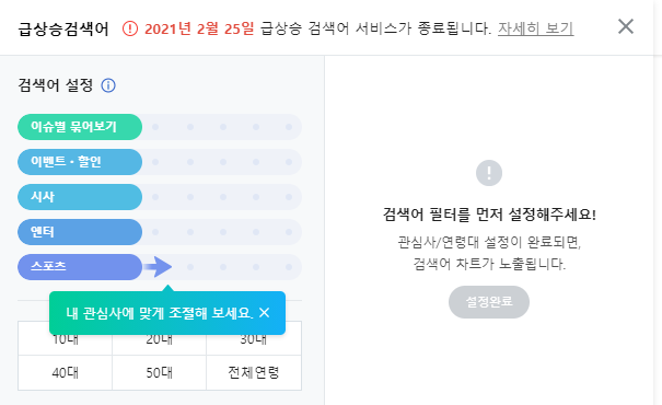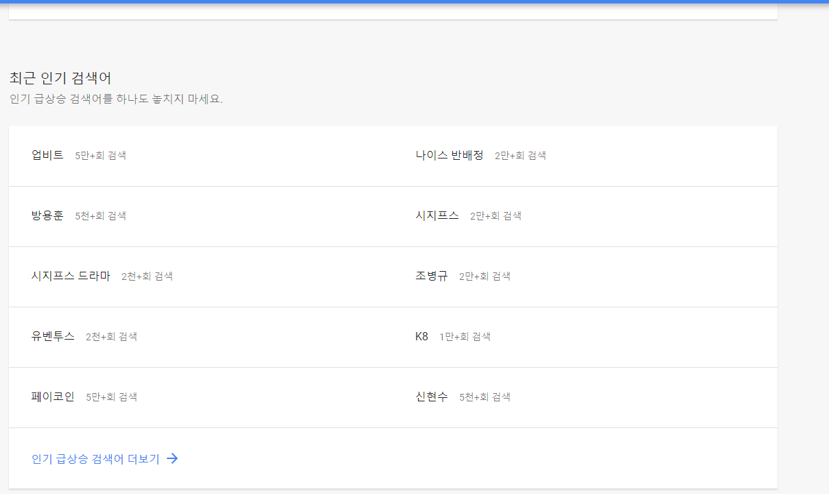 검색어 하단에 "인기 급상승 검색어 더보기"를 클릭하시면