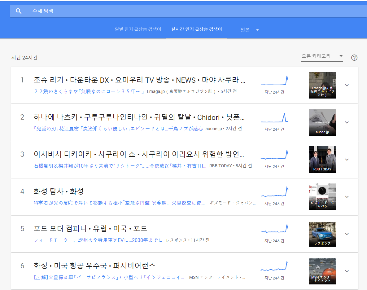 일본은 실시간 인기 급상승 검색어 기능을 사용할 수 있네요 ㅠㅠ