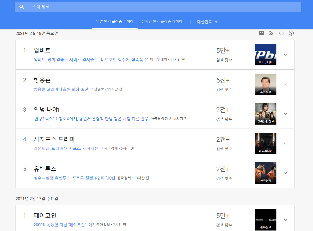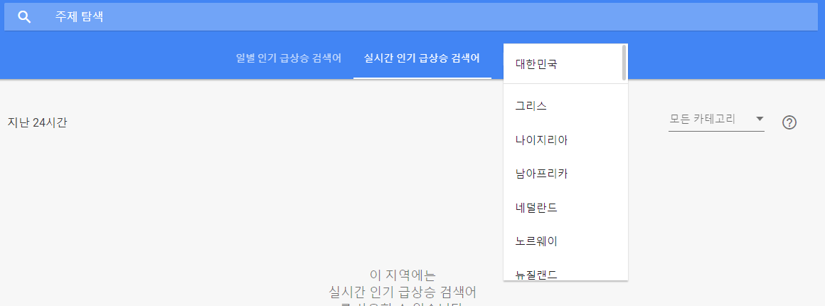 한국은 실시간 인기 급상승 검색어를 사용 할 수가 없어요 ㅠㅠ