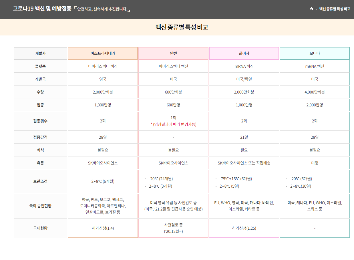 아마 위에 사진표가 국내에서 들여올 백신 종류 구요